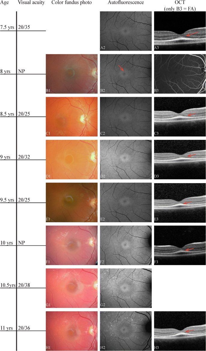 The mean age of onset was 9634 years for the combined childhood-onset participants and 28378 years for adulthood-onset participants. The individuals usually start out with excellent vision but begin to have difficulty with reading and seeing clearly when lights are dim. 1 Patients generally develop central loss of vision in childhood or early adulthood.
