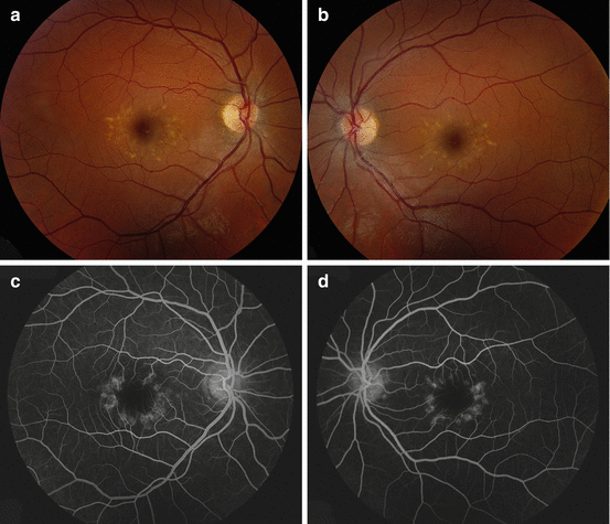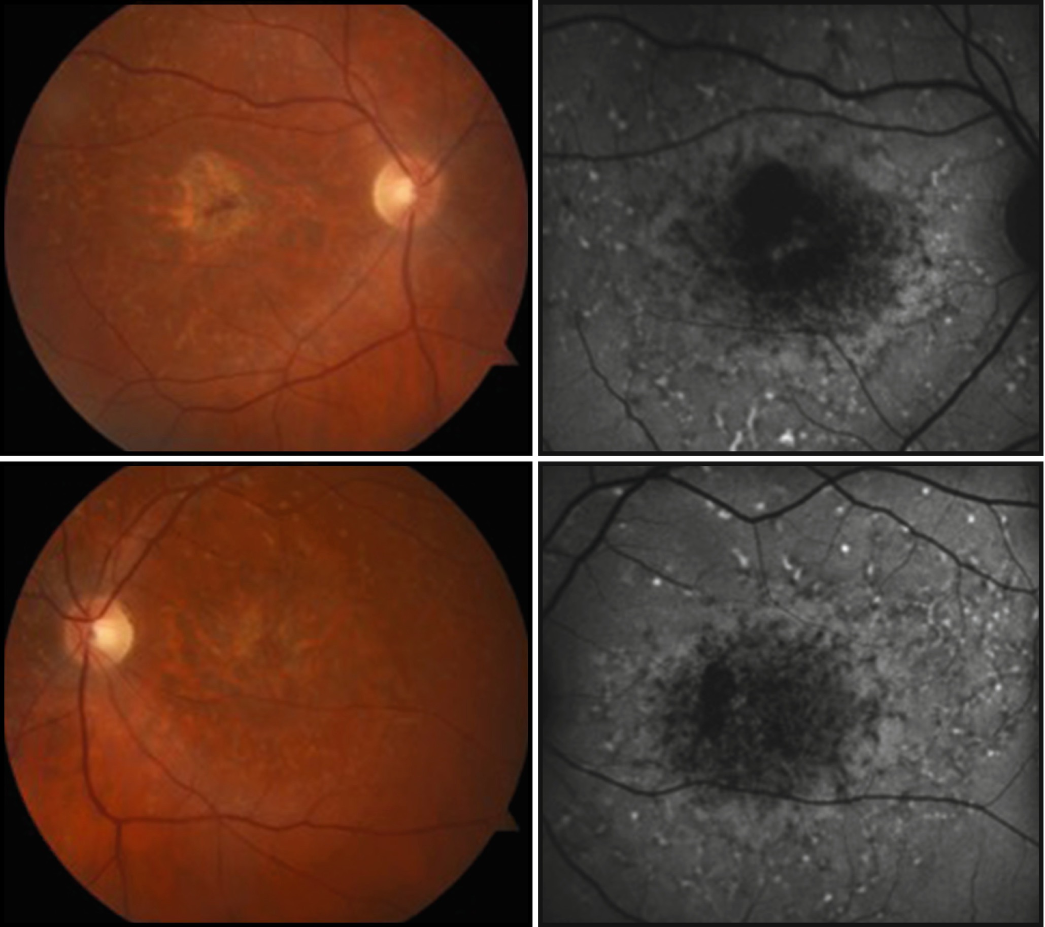 Fifty-one Stargardt patients with age at onset 10 years. It affects the macula which is in the central retinal area. Stargardt disease is the most common inheritable macular dystrophy associated with mutations in the ABCA4 gene which accounts for the majority of macular degeneration in young people.